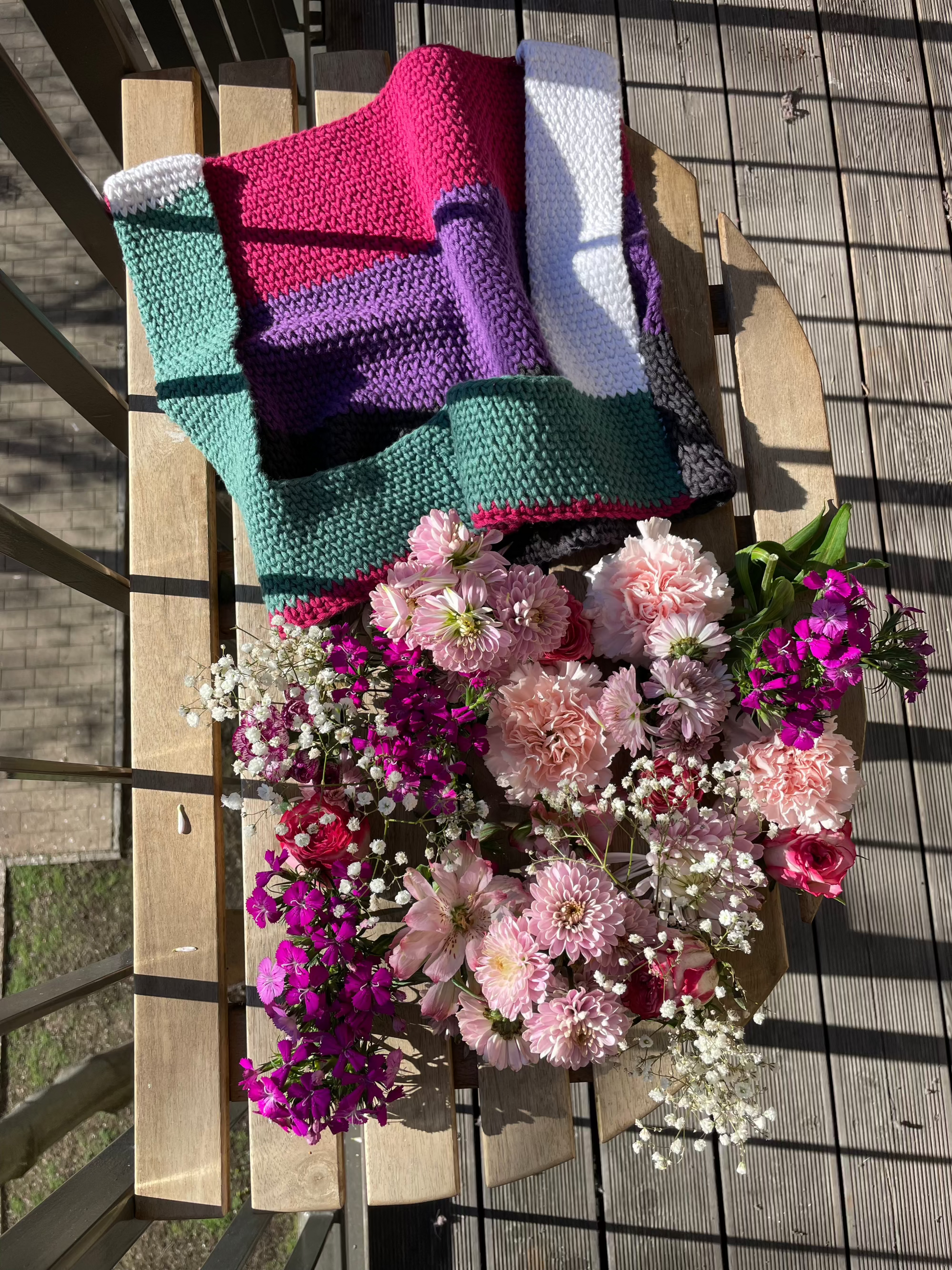 this chic and cozy crop top is meticulously hand-crocheted with 100% cotton. its playful and eye-catching design features bold, horizontal stripes in a variety of vibrant colors, while the backless style and slim fit offer a modern and flattering look. pair it with jeans or a skirt to make a statement.